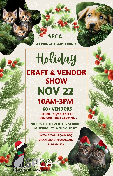 If you need more information, just call the shelter at 585-593-2200 ext 2 or e-mail us at SPCAallegany@gmail.com