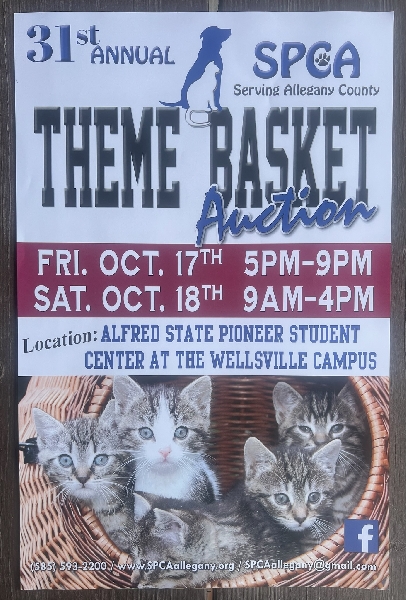 Our 31st Annual Theme Basket Auction is right around the corner on Friday, October 17th from 5pm - 9pm and on Saturday, October 18th from 9am until 4pm. This year our location is at the Pioneer Student Union Center, Alfred State College, Wellsville Campus on River Road. We will be serving some delicious food on Friday & Saturday.